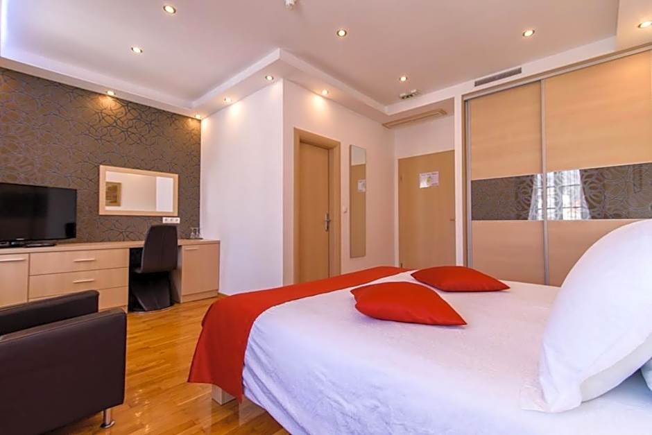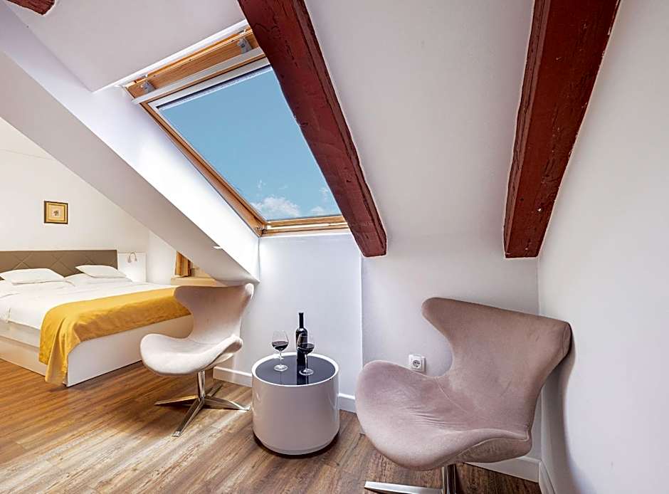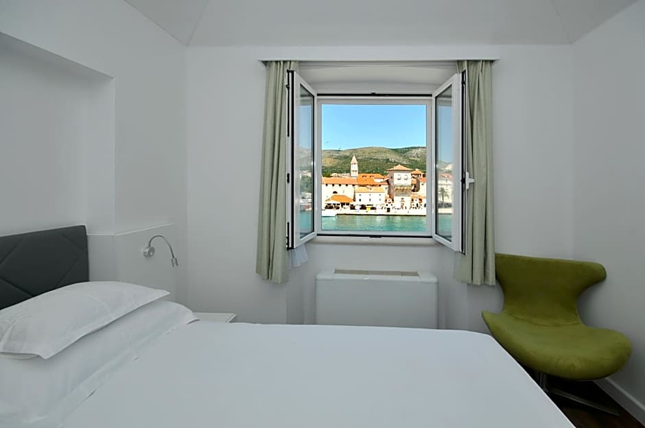 This large room offers a spacious seating area with sofa bed and views of the sea and Trogir's Old Town.